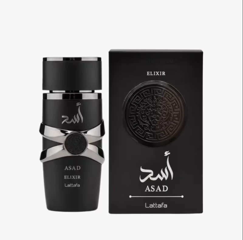 Asad Elixir de Lattafa Perfumes é um perfume Oriental Masculino. Esta é uma nova fragrância. Asad Elixir foi lançado em 2025. As notas de topo são: Pimenta Rosa, Açafrão e Toranja. As notas de coração são: Tabaco, Baunilha e Cedro. As notas de fundo são: Olíbano, Âmbar Claro, Patchouli e Cashmeran.