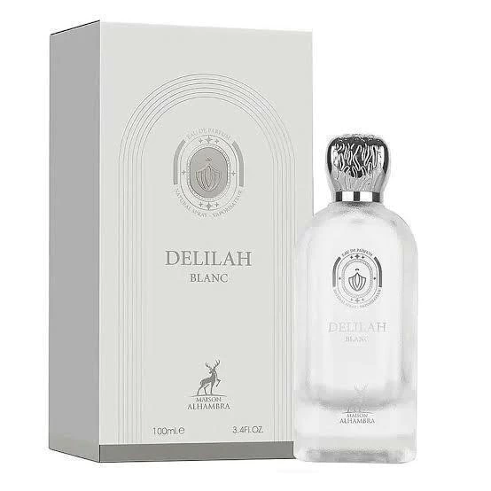 Delilah Blanc de Maison Alhambra é um perfume Floral Frutado Feminino. Delilah Blanc foi lançada em 2024. As notas de topo são: Pêssego Branco, Bergamota e Mandarina. As notas de coração são: Flor de Laranjeira e Vetiver. As notas de fundo são: Almíscar e Baunilha.