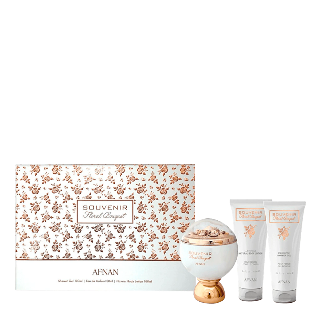 O kit contém: Perfume 100ml + Hidratante 100ml + Gel de Banho 100ml