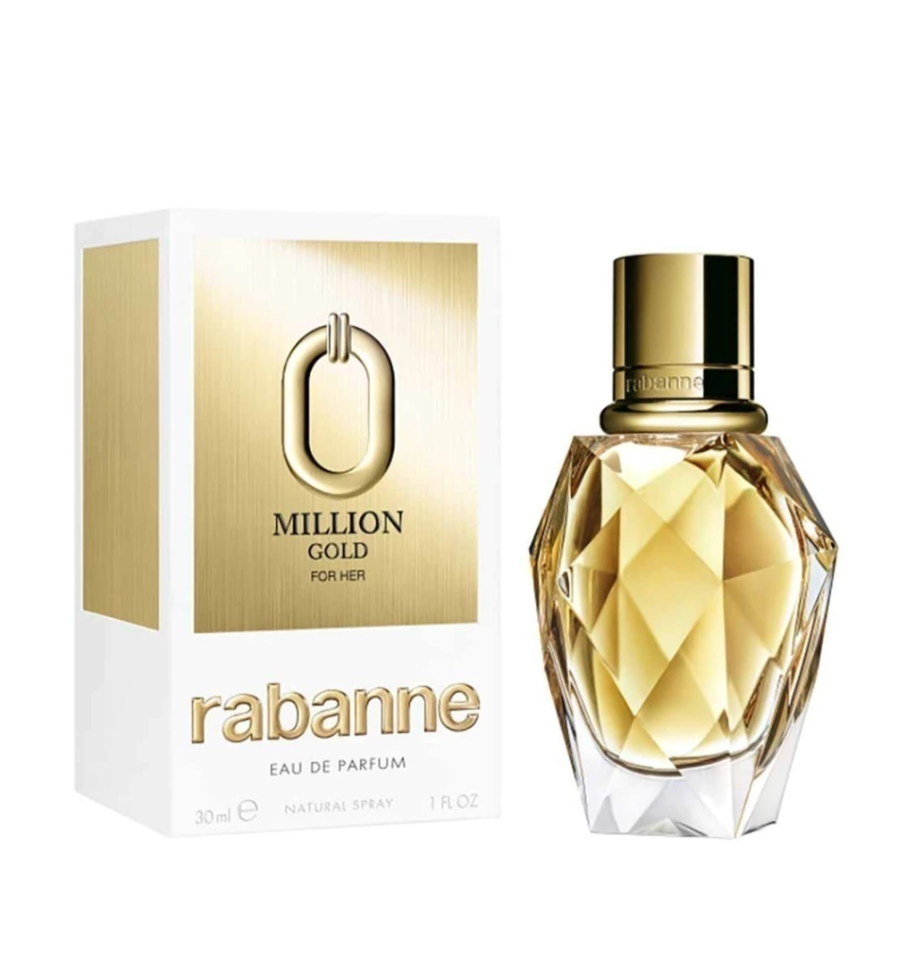Million Gold de Rabanne é um perfume Floral Amadeirado Almiscarado Feminino. Esta é uma nova fragrância. Million Gold foi lançada em 2024. As notas de topo são: Pera, Rosa e Lavanda. As notas de coração são: Ylang Ylang e Jasmim. As notas de fundo são: Almíscar, Baunilha e Musgo.