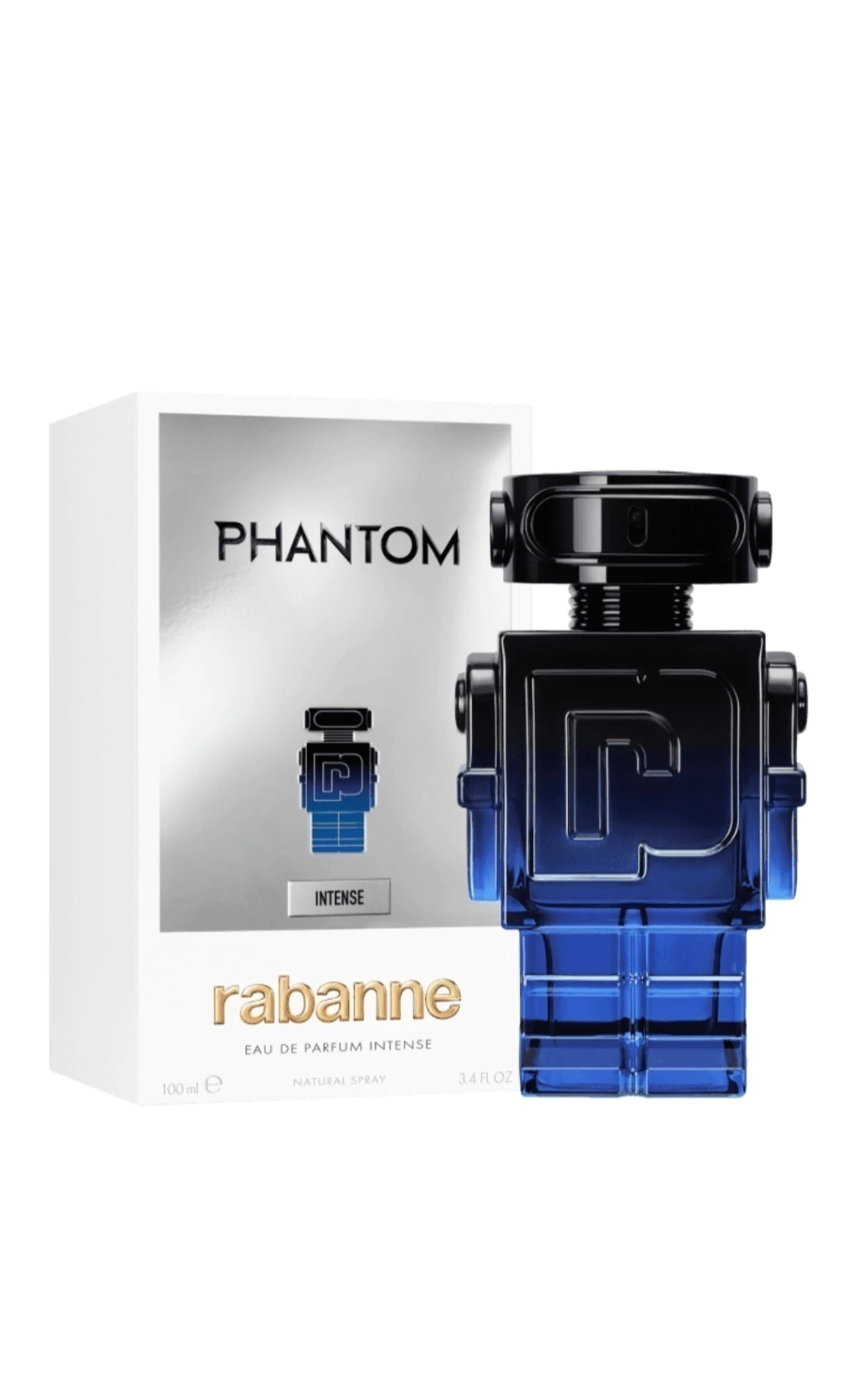 Phantom Intense de Rabanne é um perfume Oriental Fougére Masculino. Esta é uma nova fragrância. Phantom Intense foi lançada em 2024. Phantom Intense foi criado por Dominique Ropion, Anne Flipo, Juliette Karagueuzoglou e Paul Guerlain. As notas de topo são: Cardamomo, Limão, Bergamota e Ruibarbo. As notas de coração são: Lavanda, Cedro, Patchouli e Gerânio. As notas de fundo são: Baunilha, Bálsamo-de-Tolu e Vetiver.